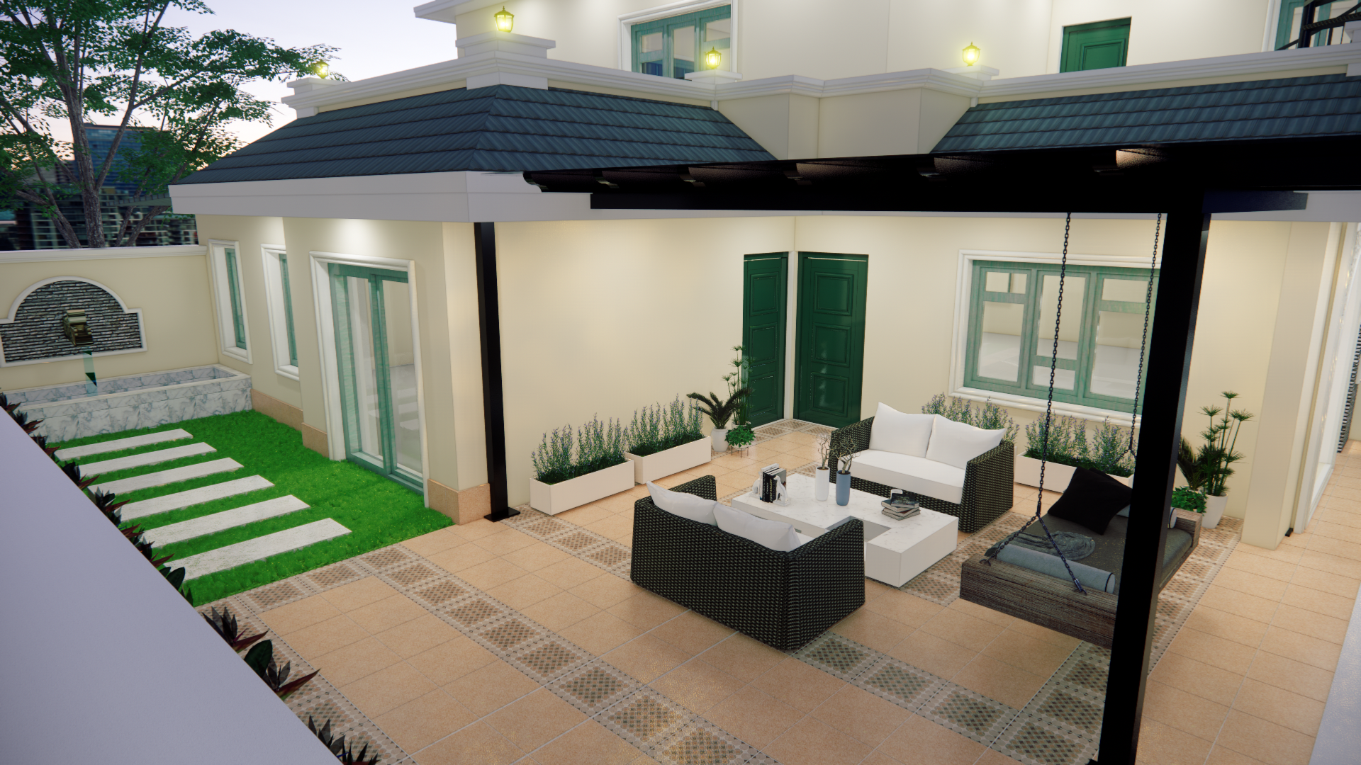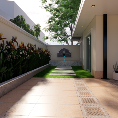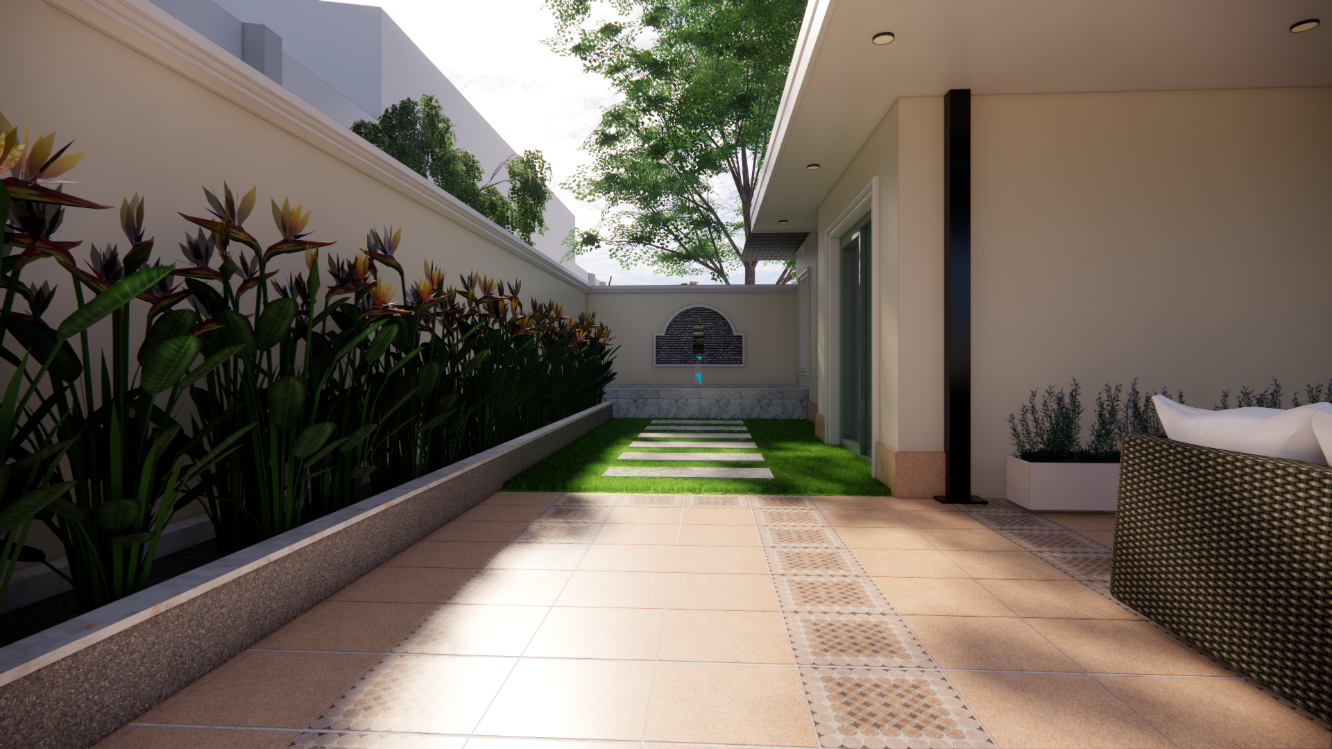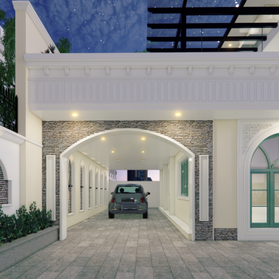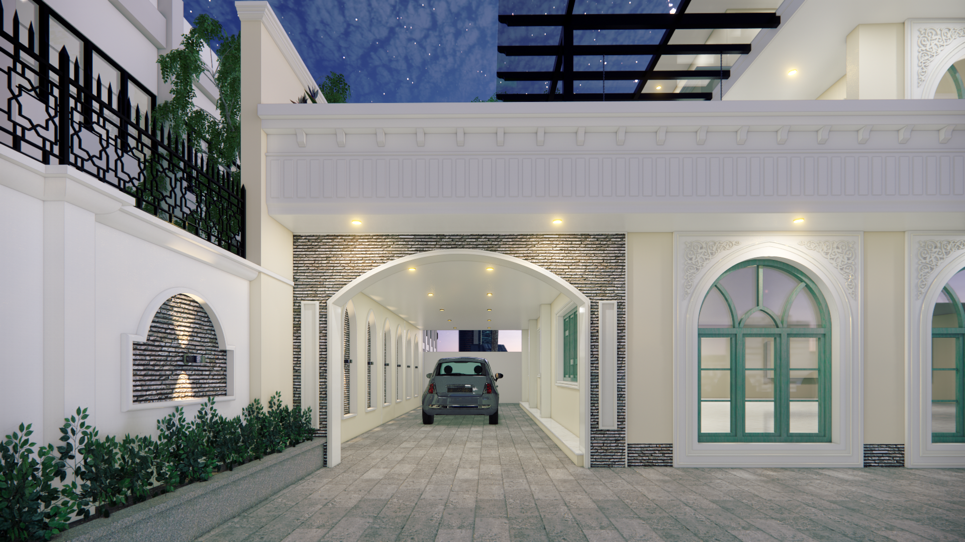 Set on a 4,100 sq. ft. site, the residence features a robust RCC frame structure with brick masonry walls, enriched by classical cornice bands, ornate motifs, and wooden window frames finished in refined duco paint. The warm tones of teak wood parquet and laminate flooring create a welcoming atmosphere, while high-quality tiles grace the kitchen, bathrooms, and patios.